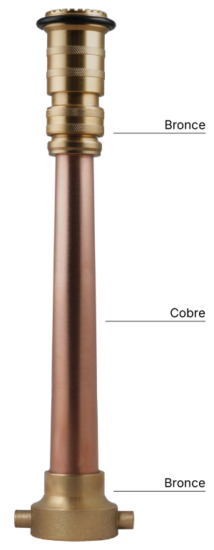 Nuestra lanza CN-BCB está compuesta por una base de bronce con rosca hembra según especificaciones IRAM 3508, cuerpo cónico de una sola pieza de cobre con un mínimo factor de fricción para reducir pérdida de carga, y una boquilla regulable chorro pleno y niebla de bronce y anillo de protección anti golpes.